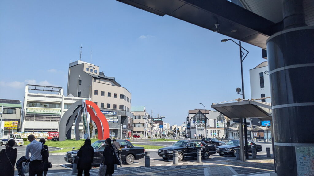 駅舎を出ると、さらに下りへ続く道が。バスやタクシーの発着所は広いスペースのある場所へ移ったようです。