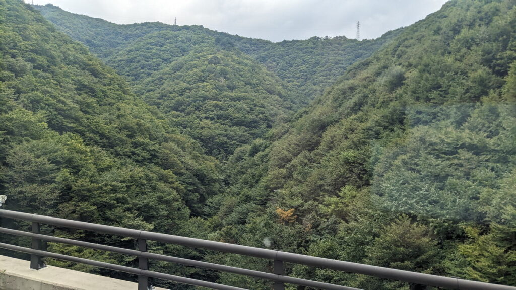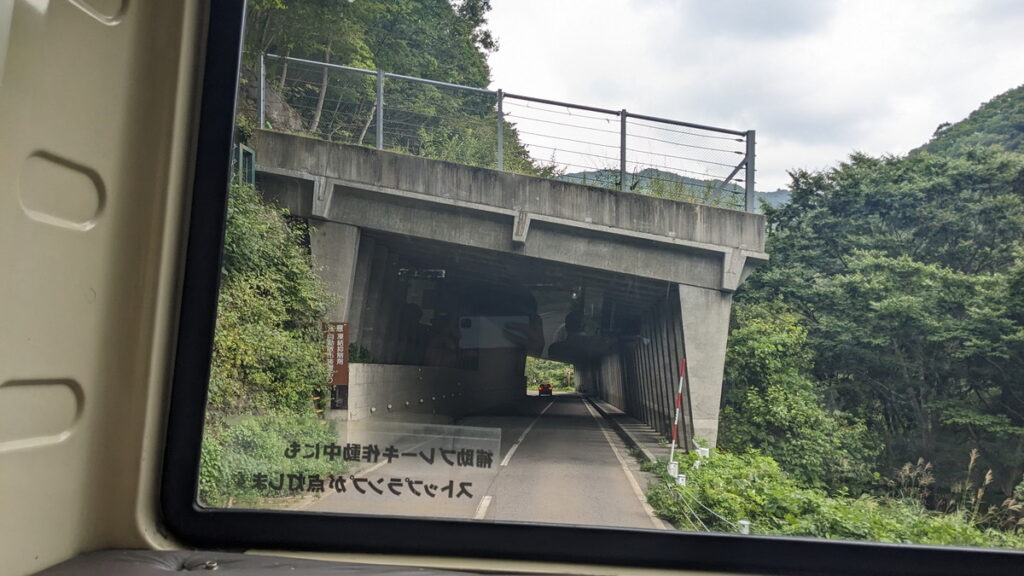 バスは国道352号を走行。国内でも屈指の豪雪地帯ともあって至る所にスノーシェッドがあります。