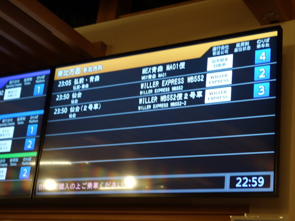 23:05 さいたま新都心バスターミナル 岩手県北バス MA01便 青森港フェリーターミナル行