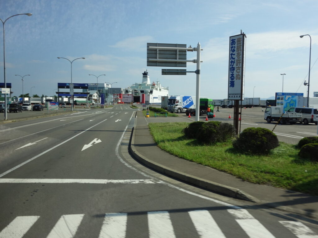 青森から青森港までは3kmほどなのであと少し。フェリーターミナルが見えてきました。