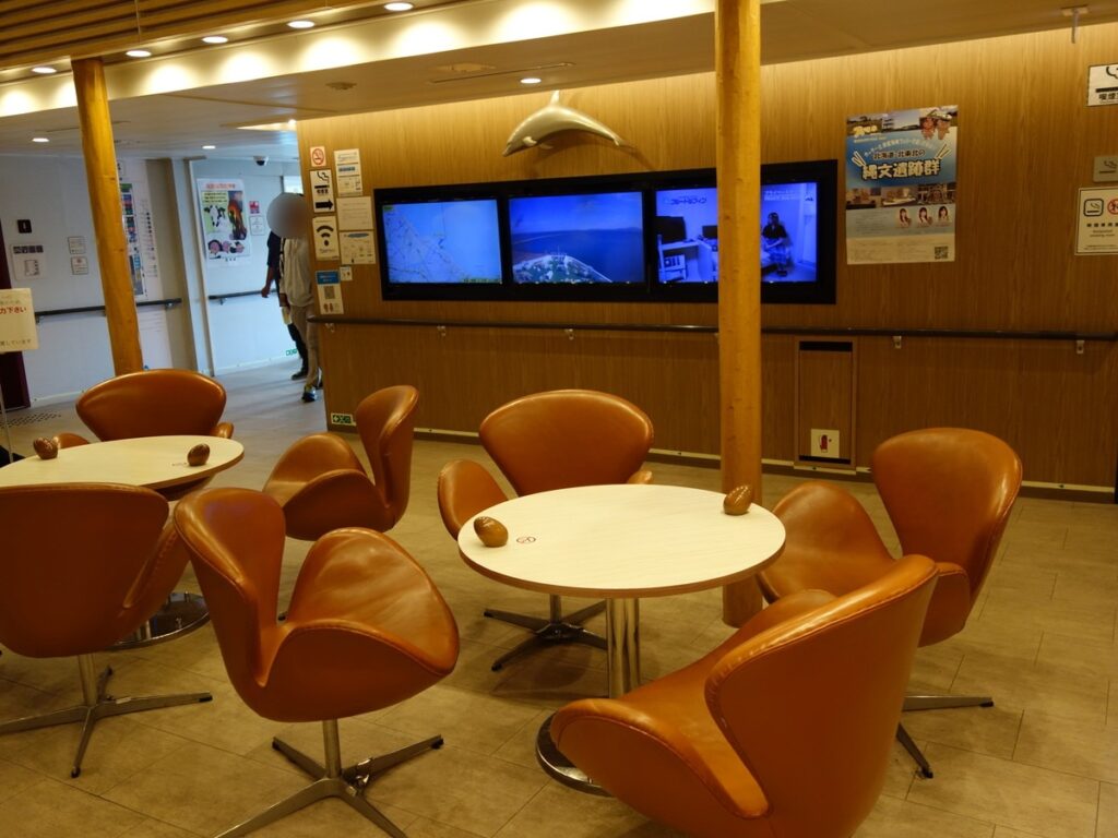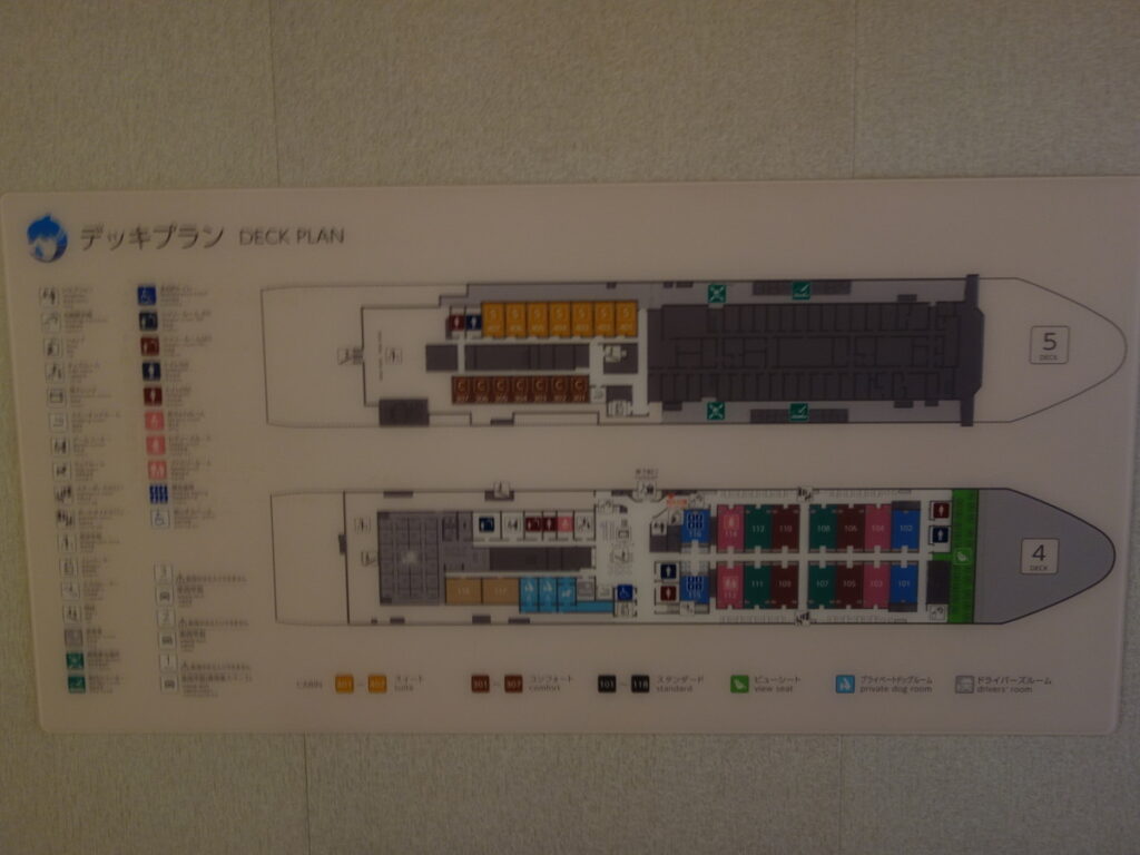船内は4階の大部屋がメインですが一部個室と船内前方の景色を楽しめるビューシートがあります。