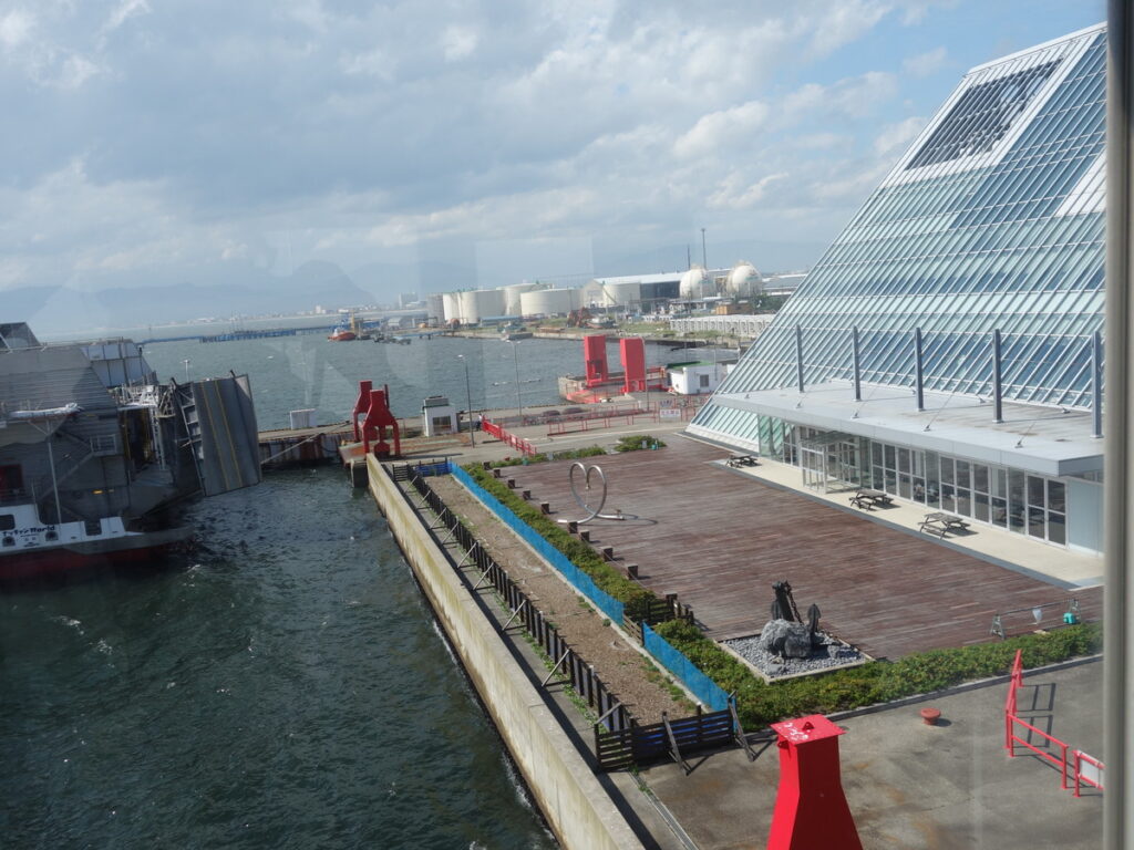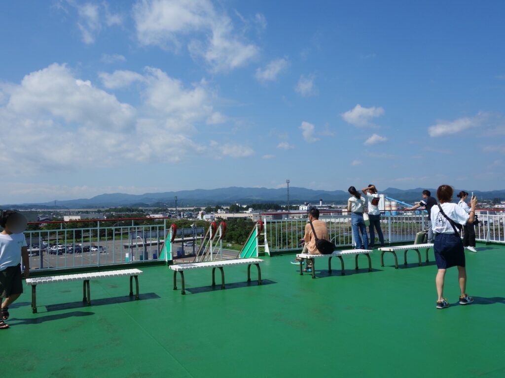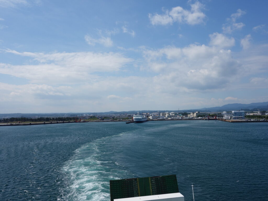 長距離フェリーの発着する八戸や苫小牧と比べると工場・倉庫が少なく遠くまでよく見えます。