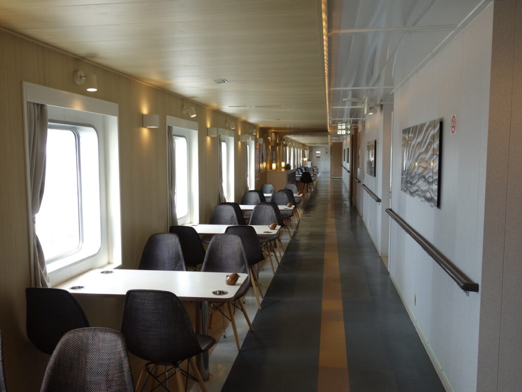 出発時間が近づいてきたのでデッキにやってきました。ベンチがあって座って過ごすこともできます。