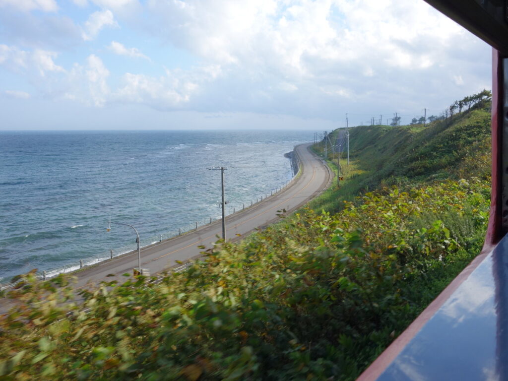 上磯から先は海沿いの区間が多く、国道に対して高いところを走行。競争するような形となります。