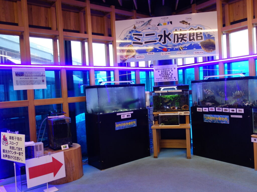 館内は観光案内所、ショップ、レストランと一通りありますが特徴はミニ水族館。