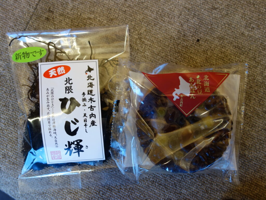 ショップで木古内産”北限”ひじきとあんぱんを購入しました。