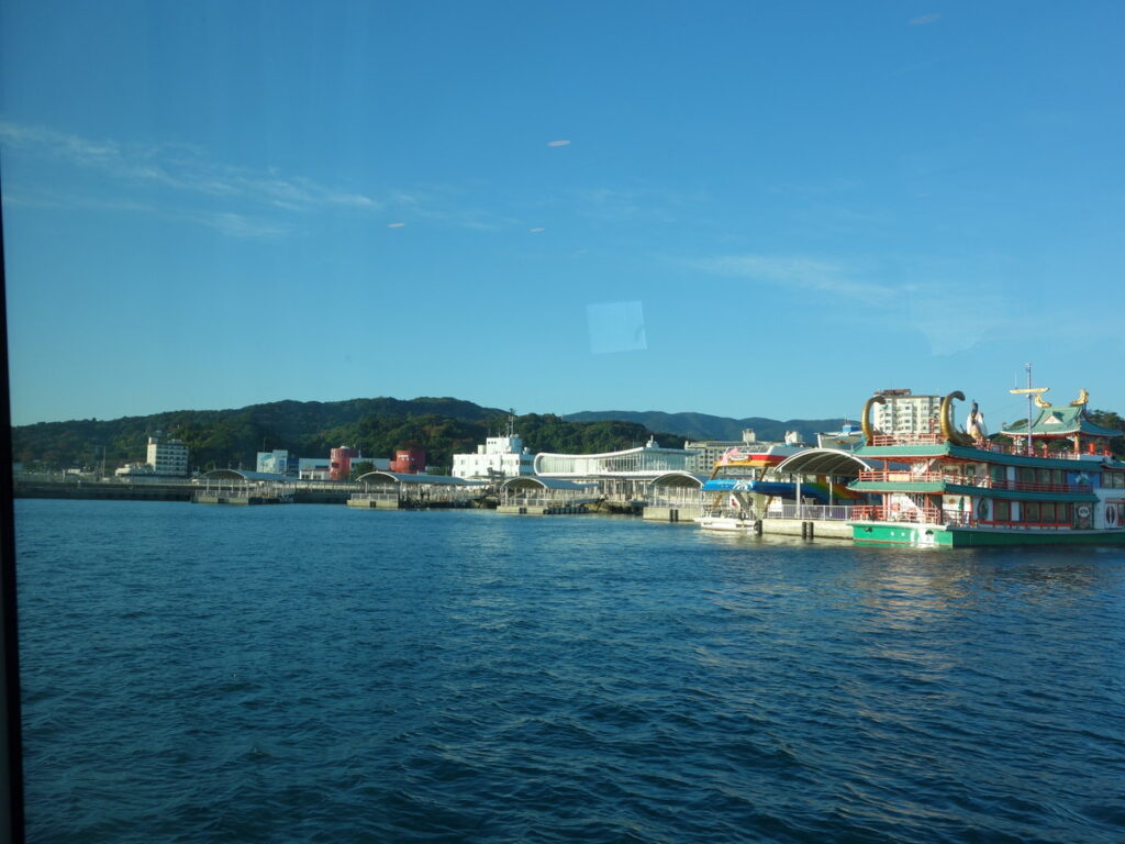 いかついデザインの遊覧船が見えてきたら鳥羽マリンターミナルももうすぐ。