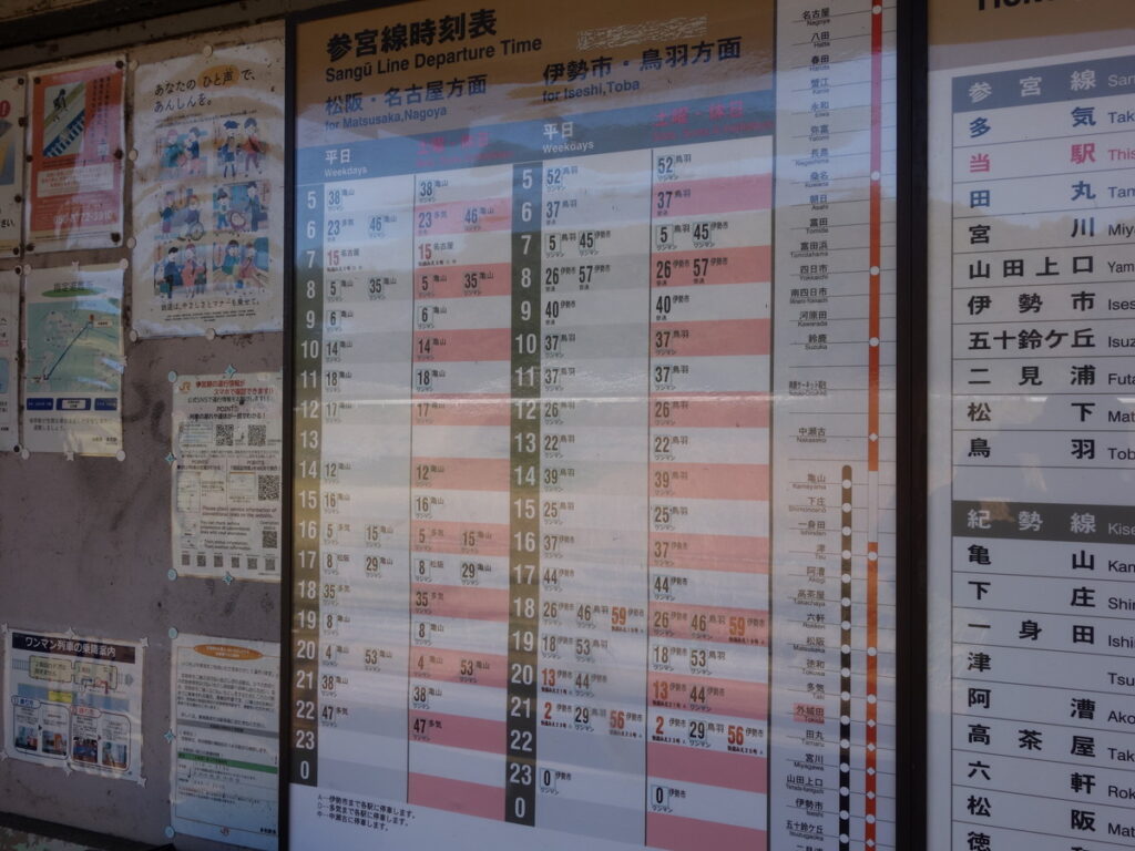 現在の時刻は13時ちょっと過ぎ。松阪方面に戻りたいんですがちょうどこの時間帯列車が来ません。
