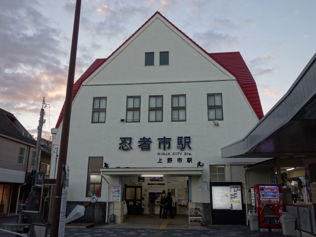 駅舎も忍者市駅の表記の方が大きくなっています。観光客へのアピールですね。