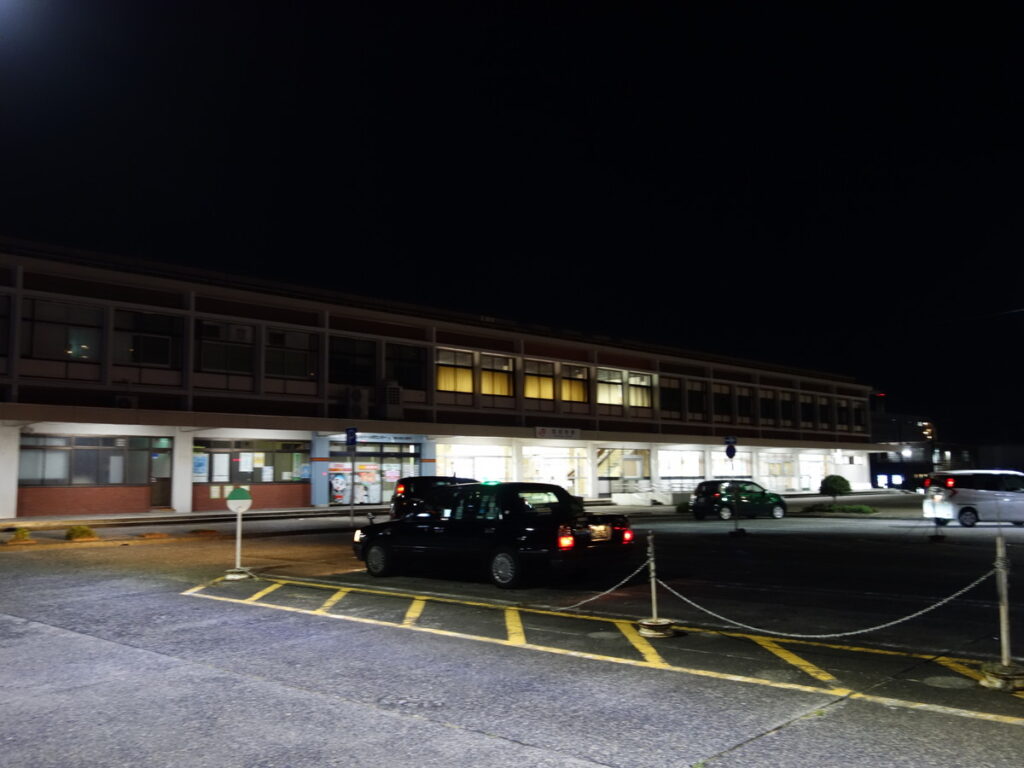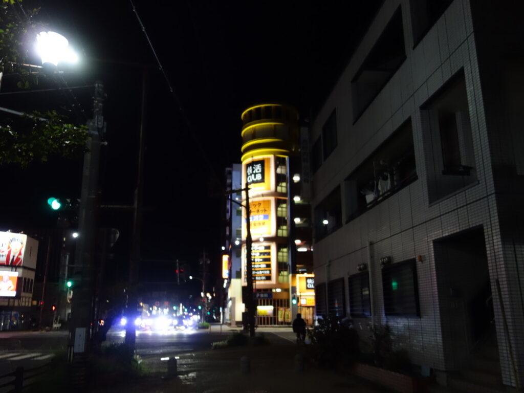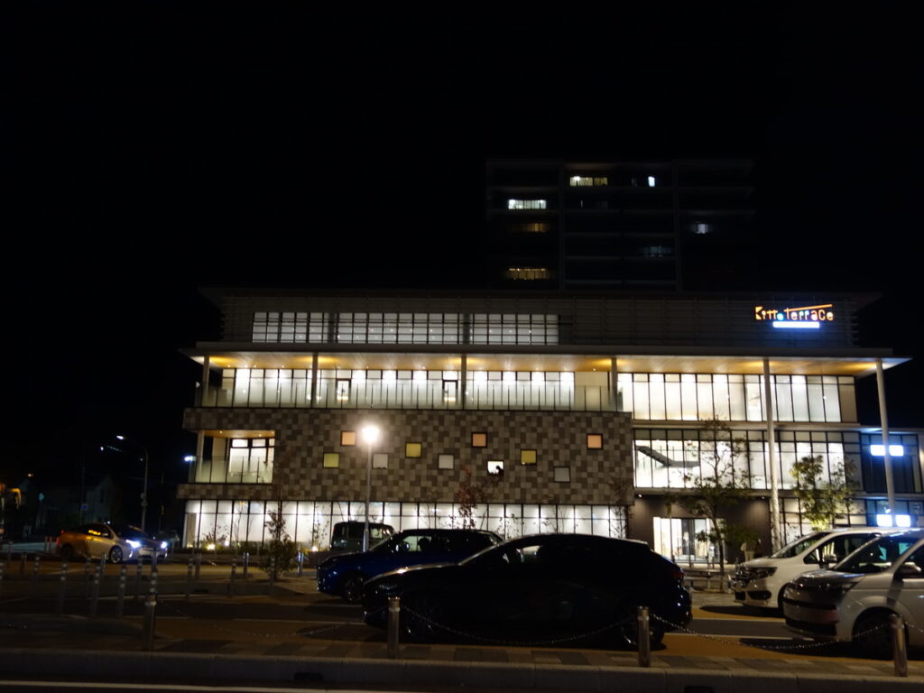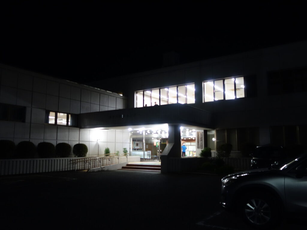 駅からは1.4km。もはや周囲は暗闇ですが施設の明かりはついていました。