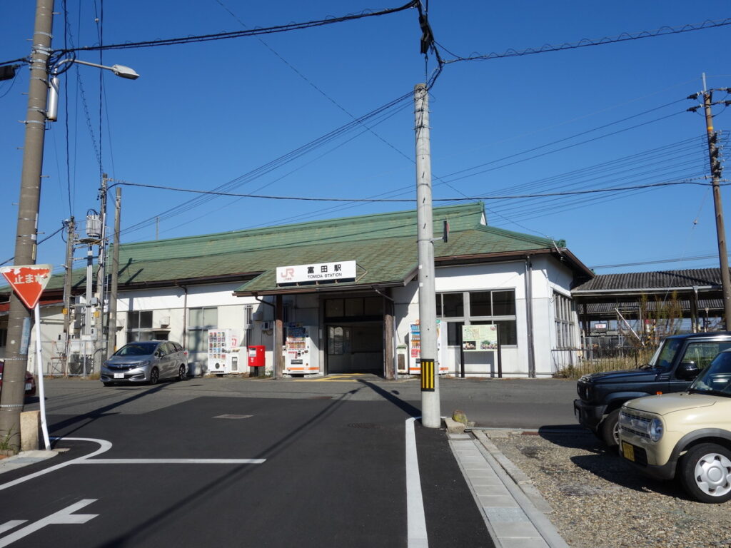 富田は快速通過駅なので30分に1本の普通列車のみ。