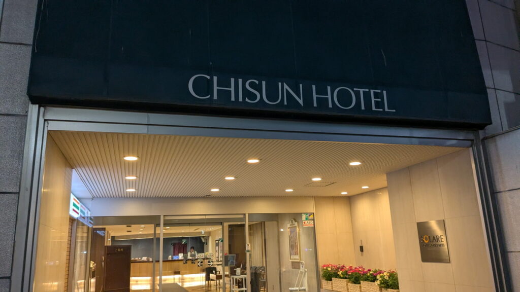 宿は西口から徒歩数分のこちら。駅前のホテルは全国チェーンをはじめ充実していますが