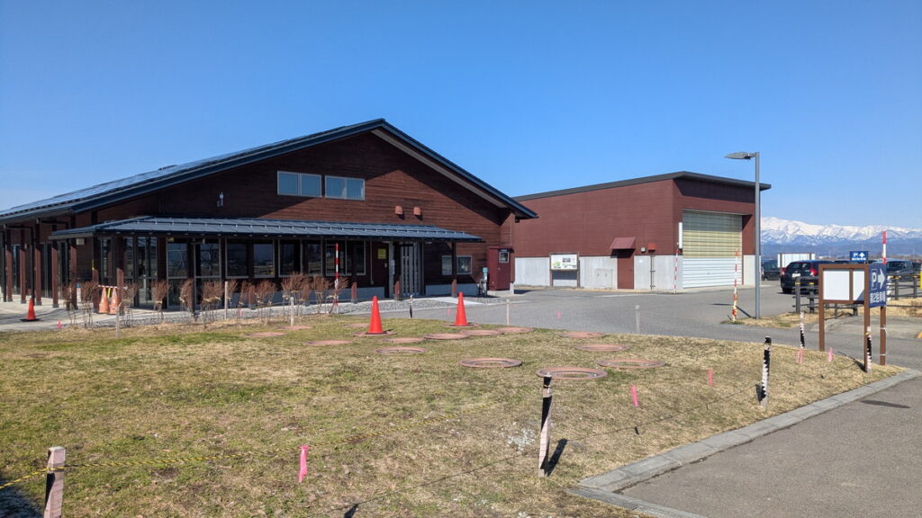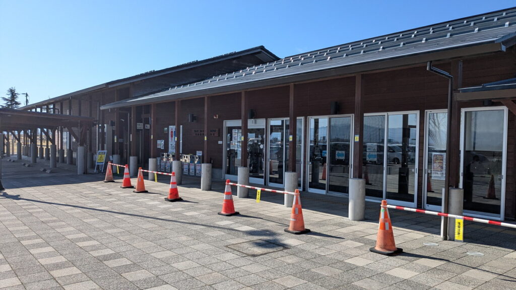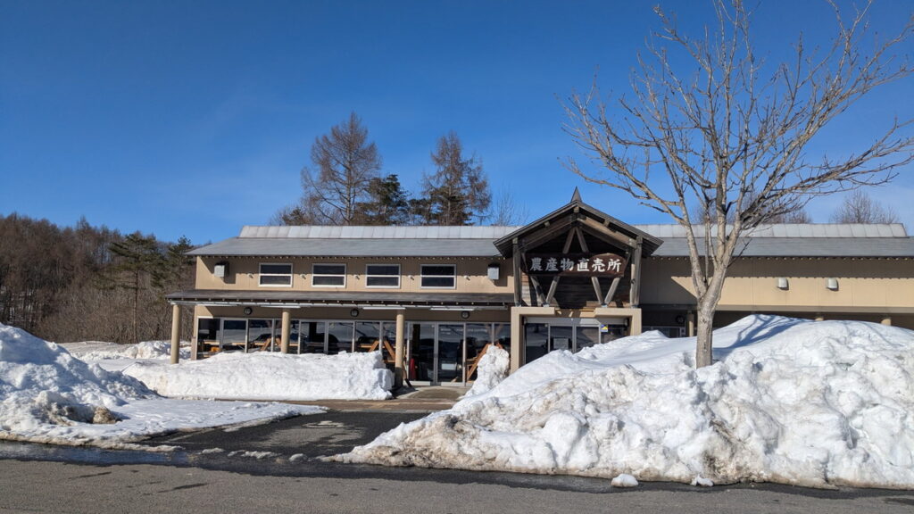 左側にあるのが農産物直売所、ですが11月までの営業のため現在は休業中。