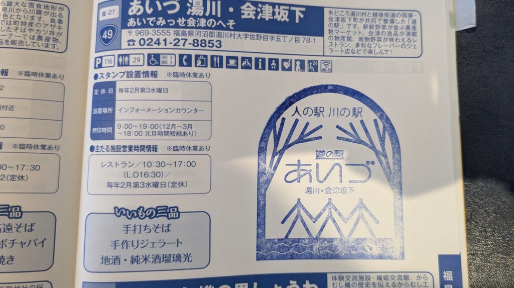 | HP | 道の駅公式:https://www.michi-no-eki.jp/stations/views/19042 道の駅あいづHP:http://heso-aizu.jp/ |