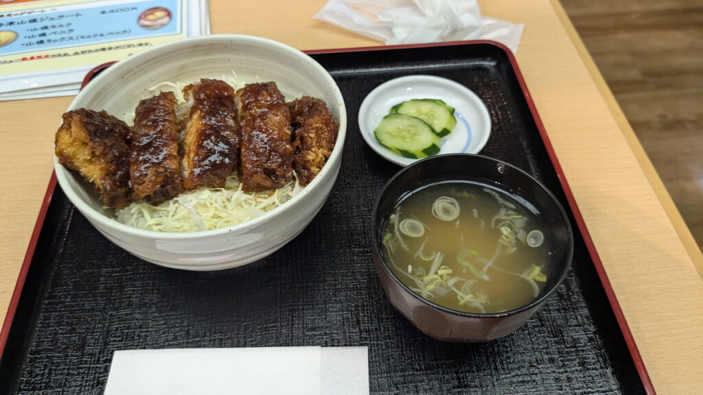 乗り継ぎの時間ができたので駅併設の店で会津名物の1つ、ソースカツ丼を食べて休憩。