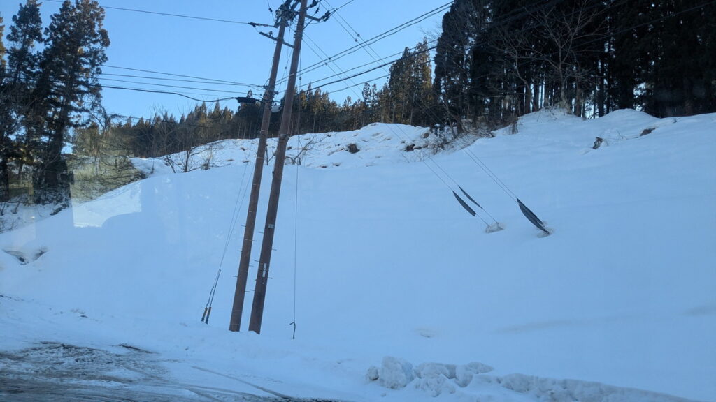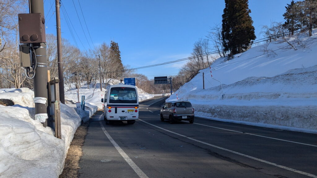 さらに進むと積雪が急増。道路脇にどっさりと積みあがるようになりました。