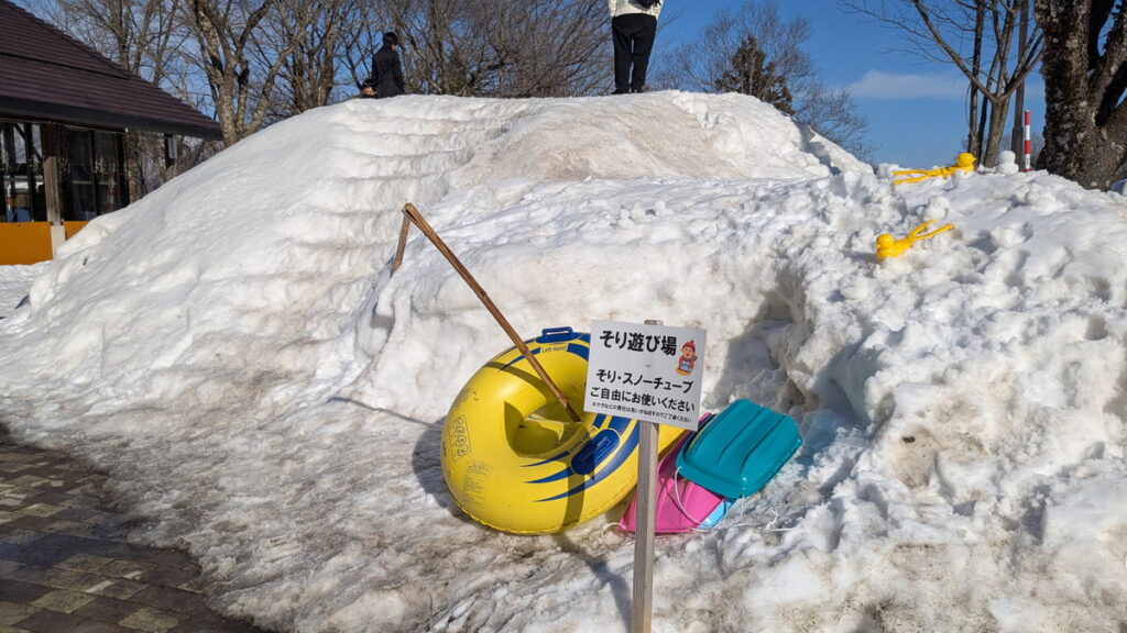 雪捨て場の傾斜でそり遊びができるようになっていました。小さい子にはちょうどよさそう。