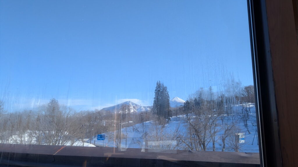建物2F部分はちょっとした展望台になっていて、北側から見る磐梯山。