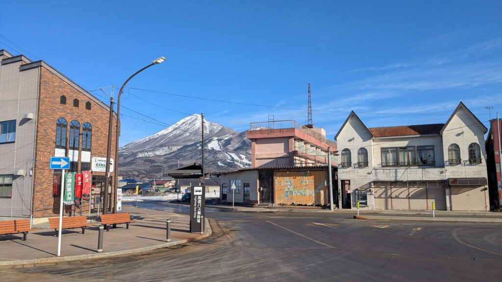 今日も天気は良好。建物の合間に磐梯山が顔を覗かせます。