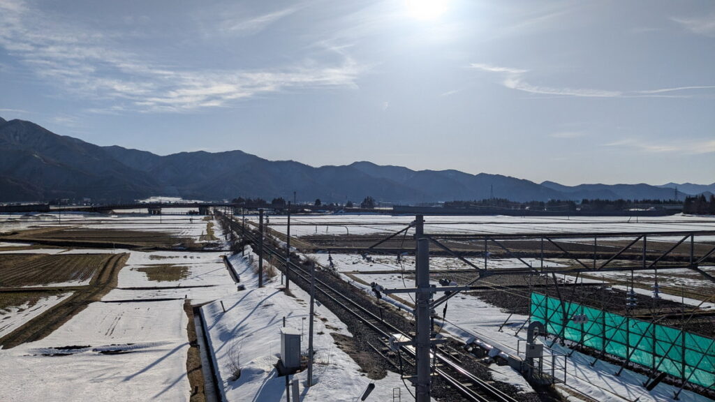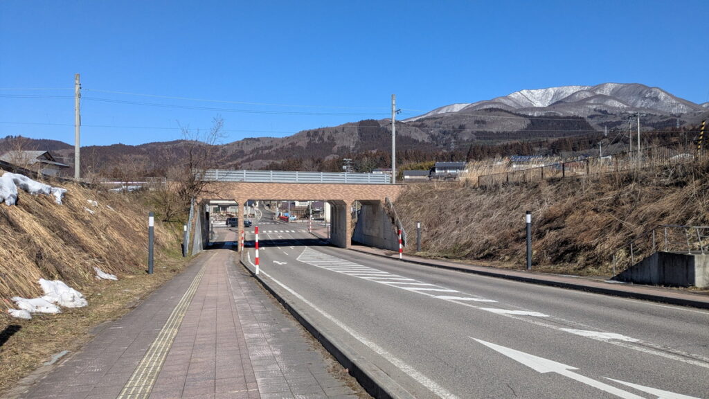 立体交差の道路で線路を越えてで猪苗代湖側へ移動。