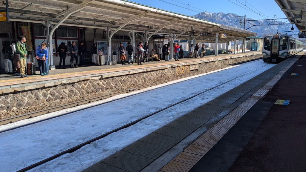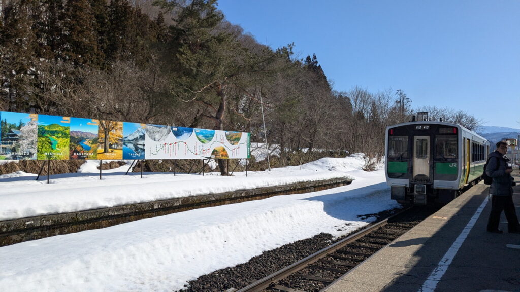 到着すると中国系の団体がぞろぞろと下車。ツアーで一部区間だけ只見線に乗るタイプでしょうか。