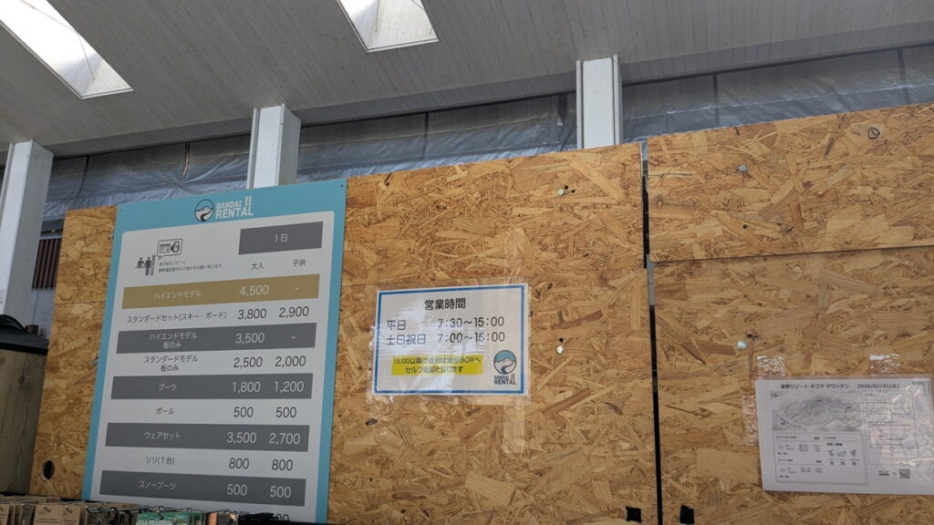 中は季節限定?でmontbellがスキー用品のレンタルをやっていました。