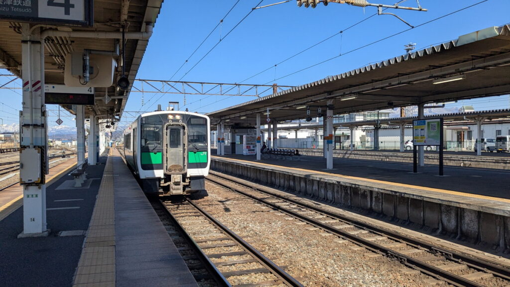 猪苗代駅に戻り、会津若松方面へ戻ります。同時刻で郡山方面の列車も来て行き違いを実施。