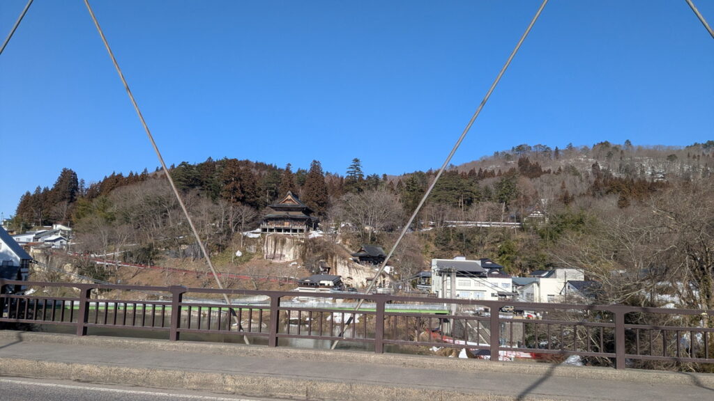 橋から遠目に見えるのは福満虚空藏菩薩 圓藏寺。