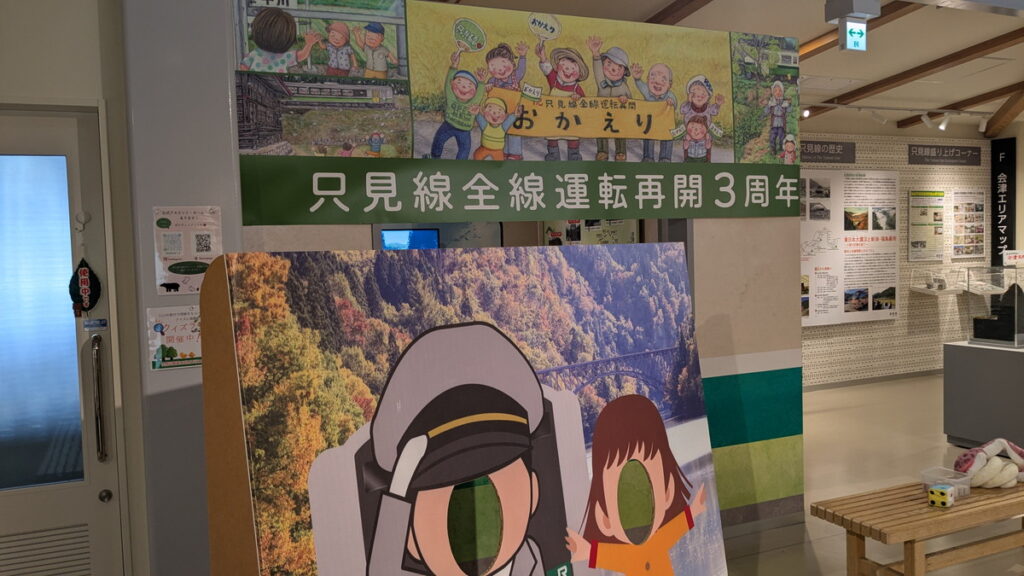 駅の中には待合室の他、只見線グッズ売り場やカフェが併設されています。