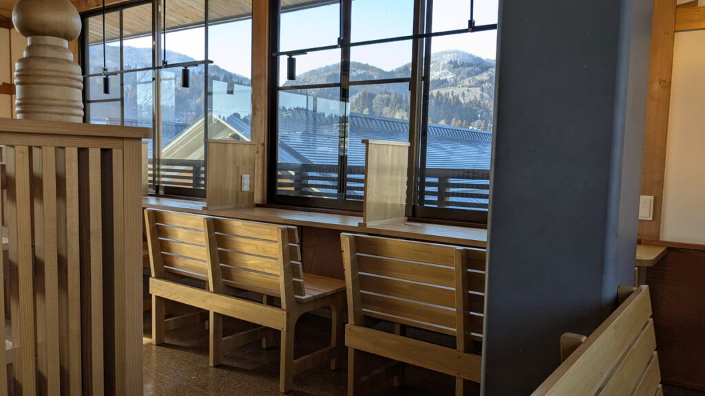 2F部分には飲食可能なスペースがあり、こちらで小休憩が可能です。